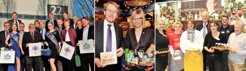 Am Stand „Gutes vom Hof.SH“ zeigten heimische Direktvermarkter die Vielfalt der Produkte in den Hofläden Schleswig-Holsteins. An drei Verkaufstresen probierten die Besucher Spezialitäten der Käsestraße und weiterer Produzenten unter dem Dach des Online-Portals. Der Direktvermarkterverein „Nordbauern“ präsentierte seine neue Bildsprache zur mediengestützten Vermarktung. Neu am Gütezeichen-Stand ist die Initiative Wir-fischen.SH. Unter dieser Dachmarke präsentiert sich die Fischerei Schleswig-Holsteins. Neben dem neuen Magazin wurden am Stand auch die heimischen Fischspezialitäten „Kieler Sprotten“ und Glückstädter Matjes angeboten.