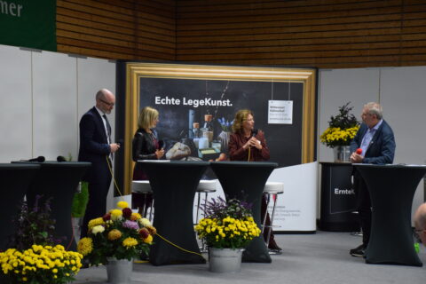 Auf der Veranstaltung rund um die Regionalvermarktung dirskutierten Vertreter:innen der Land- und Ernährungswirtschaft gemeinsam mit Politik und Zukunftsforscherin Hanni Rützler die Auswirkungen der Corona-Pandemie auf die Branche und das Verbraucherverhalten. Insbesondere die Beschleunigung von Trends und die Entwicklung resilienter Strategien für die Zukunft standen dabei im Mittelpunkt. Weiteres zentrales Thema war die Frage, wie die Wertschätzung der Kunden für regionale Lebensmittel auch über die Pandemie hinaus weiter gesteigert werden kann. An der Diskussionsrunde nahmen Landwirtschaftsminister Jan Philipp Albrecht, Präsidentin der Landwirtschaftskammer SH Ute Volquardsen, Präsident des Bauernverbandes SH Werner Schwarz, Vorsitzender der Geschäftsleitung Rewe Nord Jochen Vogel, Geschäftsführer der Meierei Sarzbüttel Bernd Stöfer, Thilo Metzger-Petersen vom Backensholzer Hof, Schweinehalterin Inken Burmester, Geschäftsführer des Fleischerverbandes Nord Dr. Joachim Drescher, Vorstand der Verbraucherzentrale SH Stefan Bock und Hanni Rützler teil. Moderiert wurde die Veranstaltung von Carsten Kock. Die anschließende Hausmesse bot viele Möglichkeiten, das gehörte noch einmal zu vertiefen.